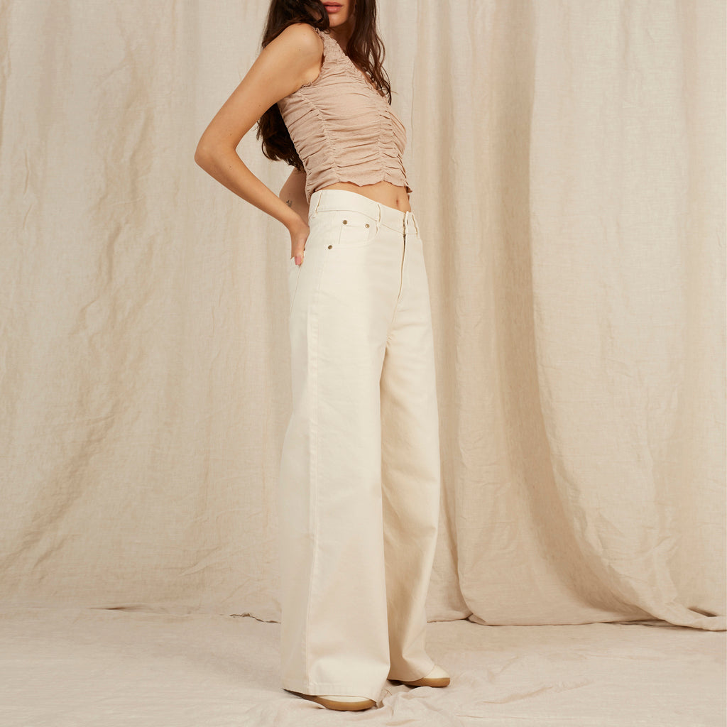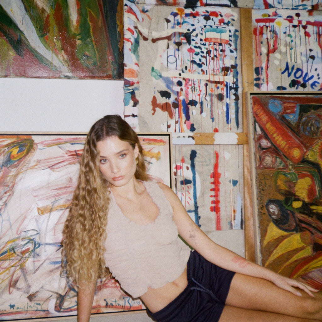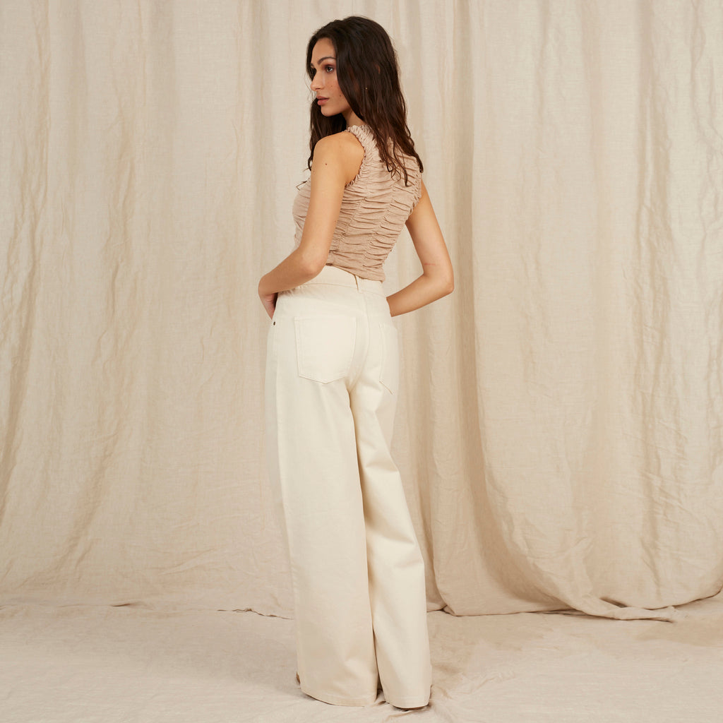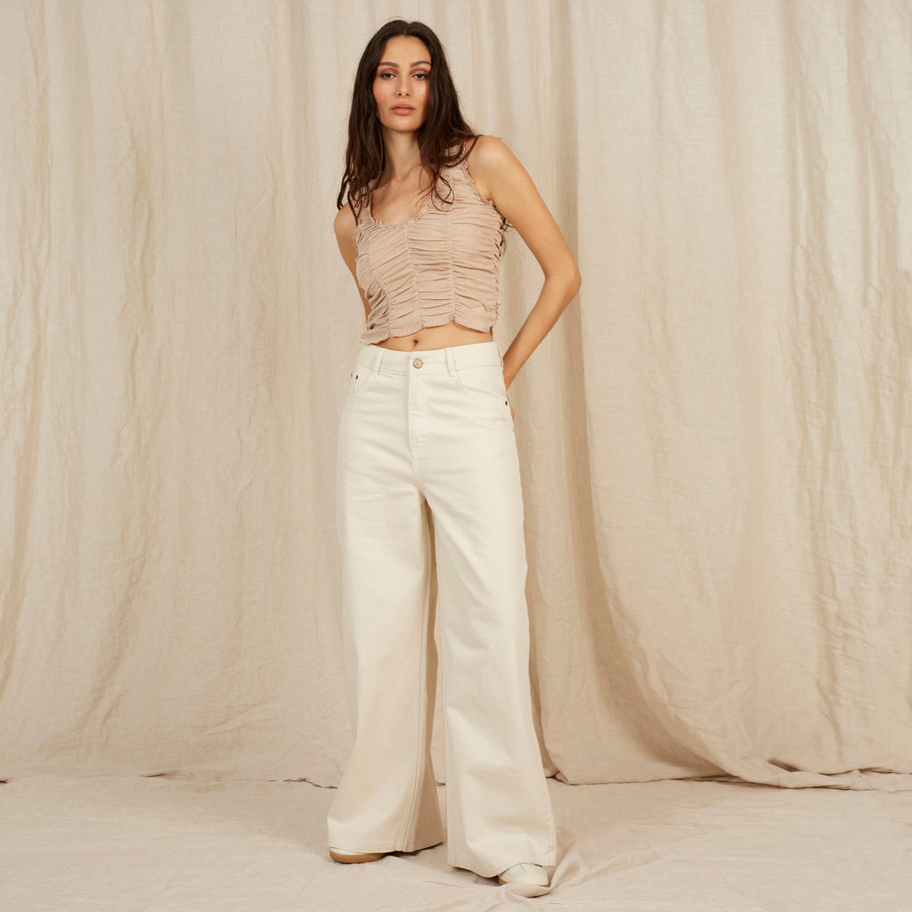Have you met Nia? Our demi-sheer vest in Sand. Featuring seamed panelling and rouching. Can be worn either way for more or less decolletage.