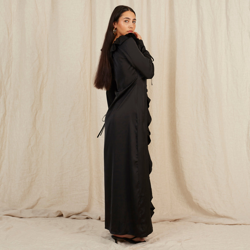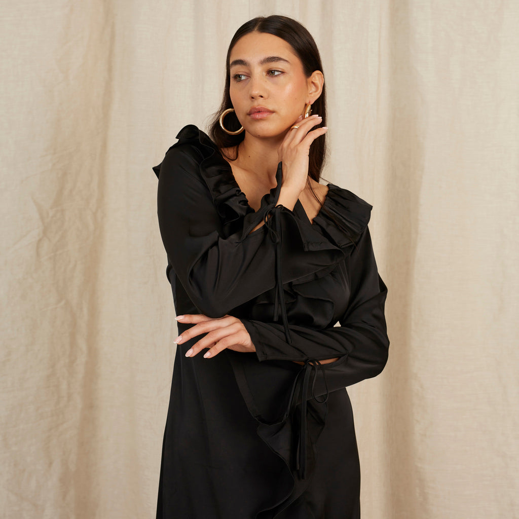 Violet Ruffle Dress in Caviar Black